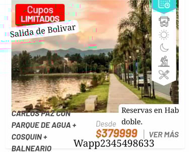 Carlos Paz + Parque de Agua Cosquín + Balneario