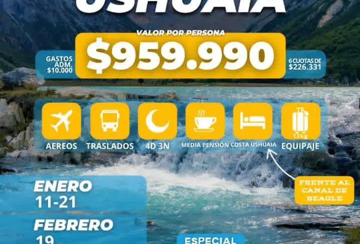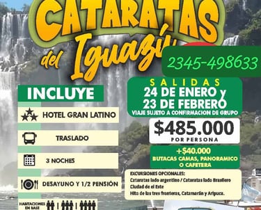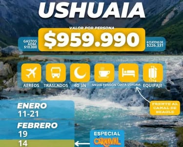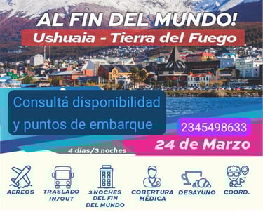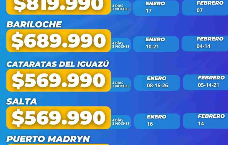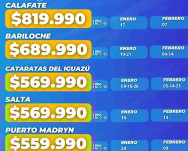 Aéreos: Ushuaia, Calafate, Bariloche, Cataratas Iguazú, Salta, Pto. Madrin, Mendoza