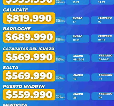 Venta de Paquetes Nacionales e Internacionales disponibles desde la ciudad de 25 de Mayo en Buenos Aires y sus alrededores
