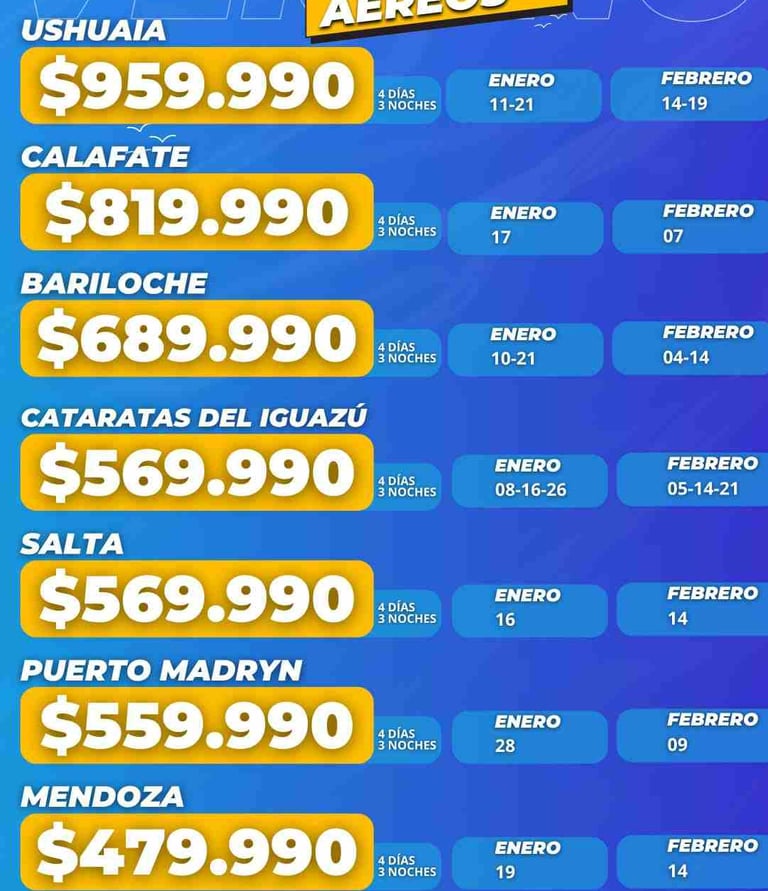 Paquetes nacionales e internacionales con atención personalizada desde 25 de Mayo.
